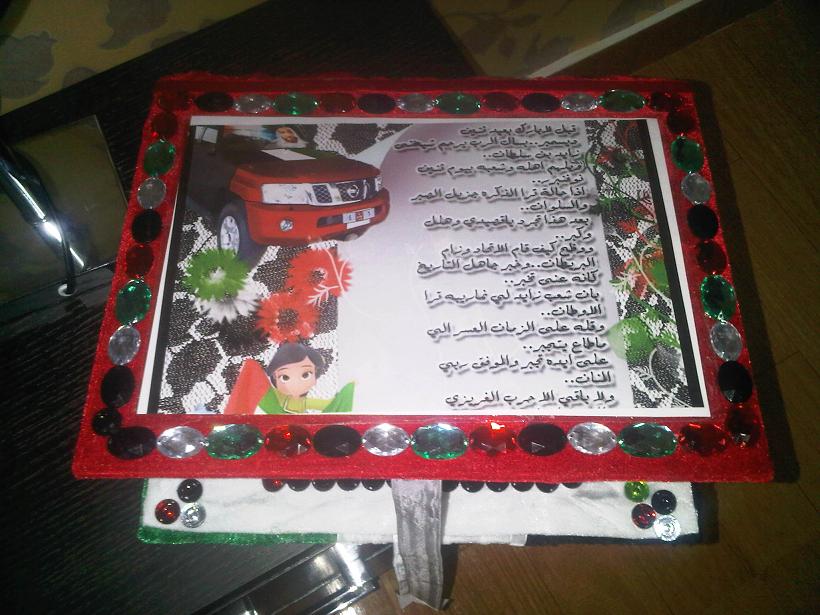 ماشاء الله حلو التشجيع بمناسبة عيدالاتحاد بنت خالتيا مشاركه في اجمل بطاقة عيدالاتحاد وطبعا اكون في ويه المدفع سويت لها هالبطاقة بس حطيته في ملف عسب اشتغل عليه عدل وبعد معاناه :( استمرت 8ساعات طلع هالشكل وان شاء الله تفوز بالمركز الاول ولا يروح تعبي هدر ^ــ^ من جدام http://www.aljblan.net/upp//uploads/...b0d8e9cb77.jpg من الخلف http://www.aljblan.net/upp//uploads/...35369485fc.jpg |