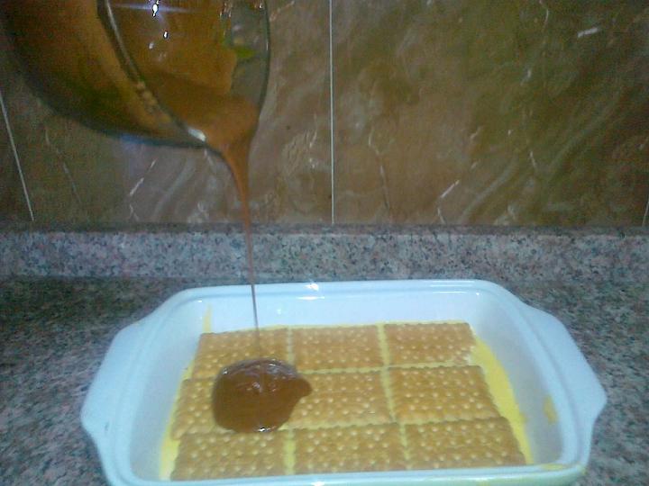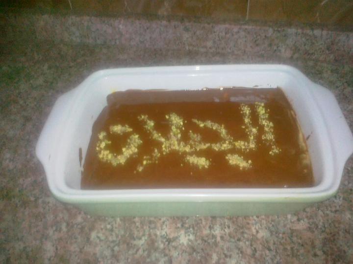 حلا السنافر علبة بسكويت اولكر 1قشطة 2 باكيت بودرة كريم كراميل 2 مغلف دريم ويب 1 ملعقة طعام بودرة كاكاو نغط (نغمس) البسكويت في الحليب المراعي ويوضع فوق شرائح ( هالحركة لازم تكون سريعةلأن البسكويت يلين بسرعة ويتقطع) ونرص البسكويت على الصينيه نخلط ( دريم ويب +حليب ابوقوس + كريم كراميل + قشطة ) في الخلاط الكهربائي ونقسم الخليط الي قسمين قسم بالخلطه نفسه والقسم الثاني بالشوكولاته والقسم الثاني بالشوكولاته نضع الخليط فوق البسكويت طبقة بسكويت وطبقة الخلطه والطبقة الاخيره بالشوكولاته فستق مطحون للتزيين <<<<<<< حركه http://www.aljblan.net/upp//uploads/...1cc5cf9f25.jpg يوضع في الثلاجة لمدة ساعتين ويقدم بااااااااارد الحمد لله طلعت لذييييييييييذة .ّ.ّ.ّ أنصحكم تجربوها واللي يسوي رجيم لا يقرب اعذروني على الصورة الكبيره وعلى ردئت التصوير مصوره من موبايل |